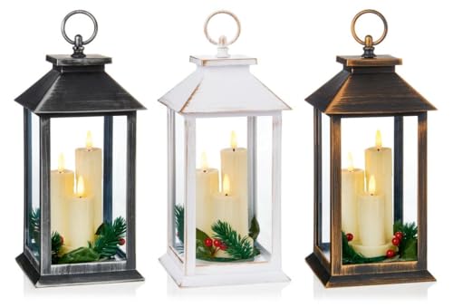 Elevate your autumn ambiance with this Rustic Large Bronze and Gold Lantern. Featuring three LED flicker flame candles, it's perfect for creating a cosy, inviting atmosphere at home this fall.