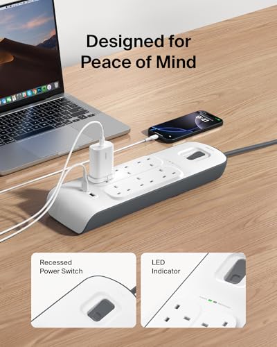 The Chelsea Gamer Belkin 6 Way Surge Protect Strip - 2m Cable with 2 x USB