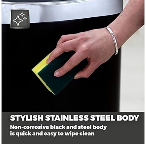 Tower Sensor Bin by T80900 Square Stainless Steel Infrared 58L Black Black