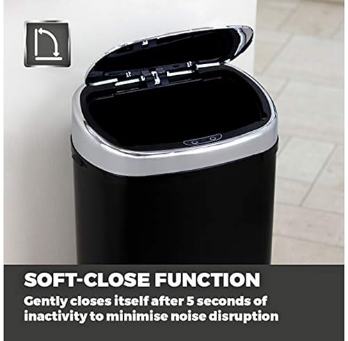 Tower T80900 Kitchen Bin with Sensor Lid, Touchless for Hygienic Waste Disposal, Infrared Technology, 58 Litre, Black