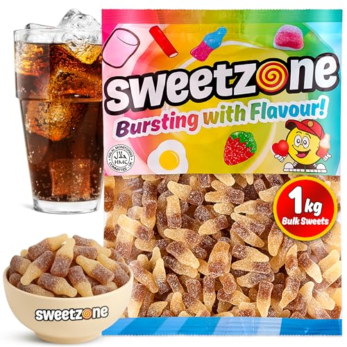 Sweetzone Small Fizzy Cola Bottles Halal Candy Bag, 1 kg Bulk Sweets, Retro Chewy Gummy Sweets, Bulk Candy Sweet Bags, Sweet Treats, Cola Flavour Bottles Tub for Parties, Events and Celebrations