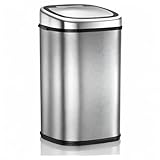 Tower T80901 Stainless Steel Kitchen Bin with Sensor Lid, Automatic Soft-Close, Manual Override, 58 Litre, Silver