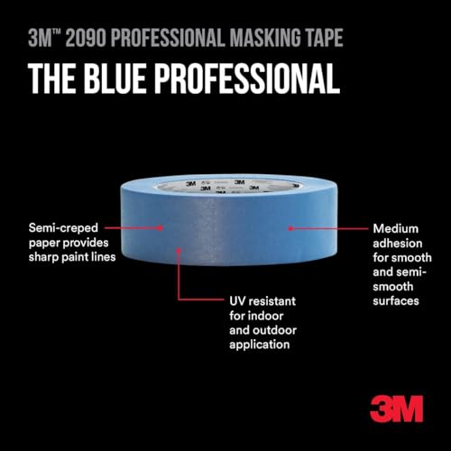 3M Professional Masking Tape 2090 – Pack of 12 rolls, 18 mm × 50 m - Blue, UV St