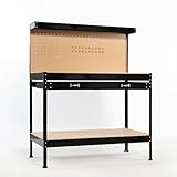 KMS - SwitZer Steel Garage Workbench Toolbox Storage With Drawers Pegboard and 20 Pegs Shelf diy Workshop Station Black