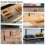 SwitZer New Black Steel Garage Tool Box Toolbox Work Bench Workbench Storage With Drawers Pegboard and 20 Pegs Shelf DIY Workshop Station