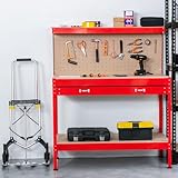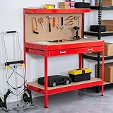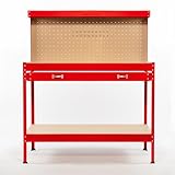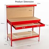 KMS - SwitZer Steel Garage Workbench Toolbox Storage With Drawers Pegboard and 20 Pegs Shelf diy Workshop Station Red