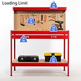 SwitZer New Red Steel Garage Tool Box Toolbox Work Bench Workbench Storage With Drawers Pegboard and 20 Pegs Shelf DIY Workshop Station