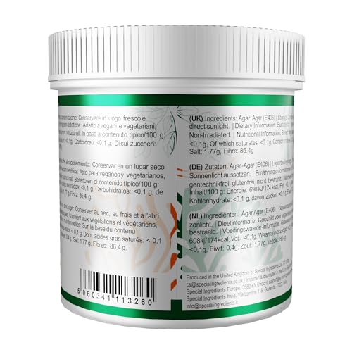 Special Ingredients Agar Agar 250g Premium Quality Powder Vegan Gelatine, European, Suitable for Vegan's & Vegetarian's, Non GMO, Gluten Free, Recyclable Container