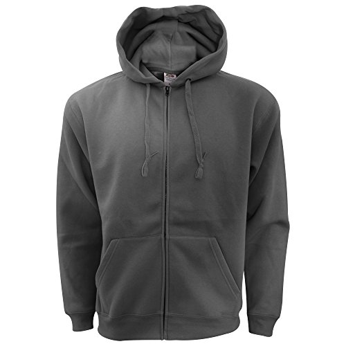 Fruit of the Loom Mens Zip Through Hooded Sweatshirt Hoodie in Charcoal Size: Small Charcoal S