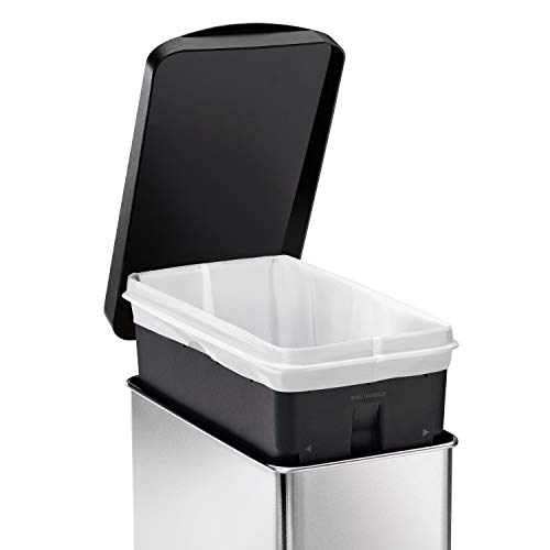 simplehuman CW1180CB 10L Slim Profile Pedal Bin, Small Bin for Bathroom Bedroom Office, Strong Steel Pedal, Inner Bucket, Fingerprint-Proof, Brushed Steel with Black Dent-Proof Plastic Lid