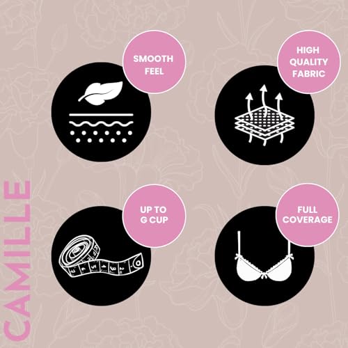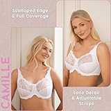 Camille Melody Lace Full Coverage Bra – Underwired Women's Bras with Scalloped Edge & Adjustable Straps – Elegant & Supportive White Bras for Women - White 32F