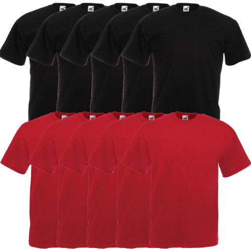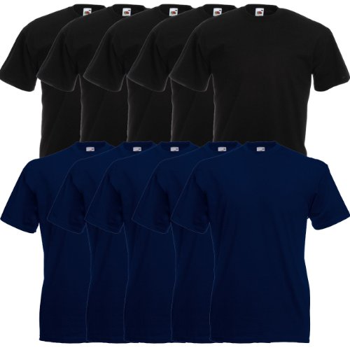FRUIT OF THE LOOM Original Valueweight T Round Neck t-Shirt F140 5 10er 15 20s Pack - Men, 5X Black 5X Sky Blue, XL - 10x Pack