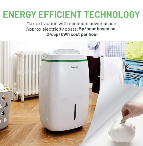 Meaco 20L Low Energy Dehumidifier and Air Purifier 2 in 1- Dehumidifier For Medium to Large Size Homes - Controls Humidity & Cleans Air All Year Round with HEPA filter [Energy Class A] White