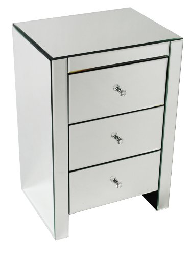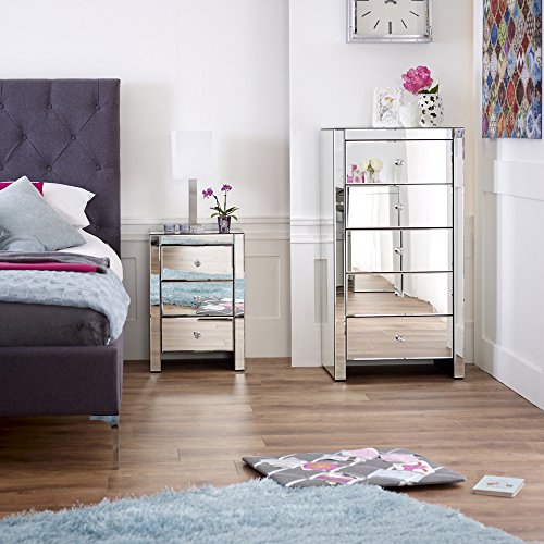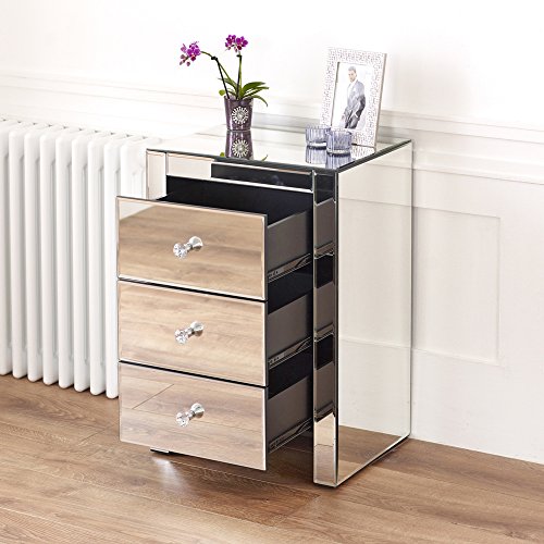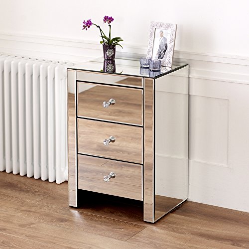 The Furniture Market Venetian Mirrored 3 Drawer Bedside Table | Crystal Glass Handles | Bevelled Edges | Premium Quality | No Assembly Required | H 660mm x W 450mm x D 350mm