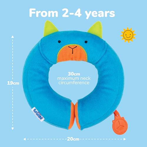 Trunki Kid's Travel Neck Pillow and Chin Rest | Support Sleepy Heads in the Car Seat, Plane, Bike or Pram | Yondi SMALL Bert (Blue)