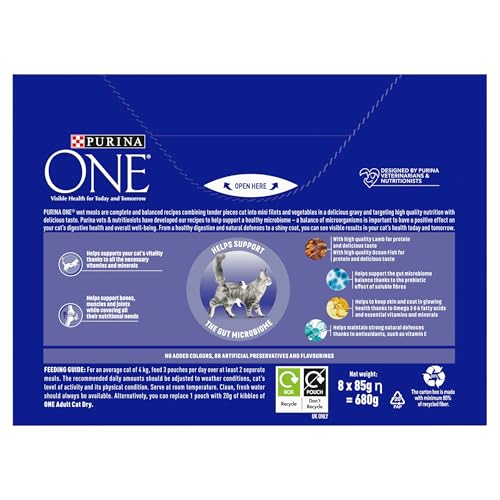 Purina ONE Adult Cat Food Fish and Lamb 8x85g - PACK (5)