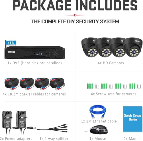 SANSCO 5MP 8CH CCTV Security Camera System with 1TB Hard Drive, 8 Channel Expandable DVR, 4pcs 3K IP66 Waterproof Metal Dome Cameras, with Human/Vehicle/Face Activated Full Color Night Vision
