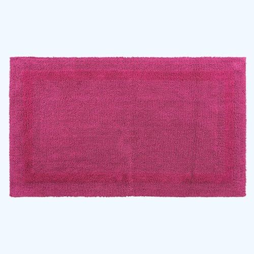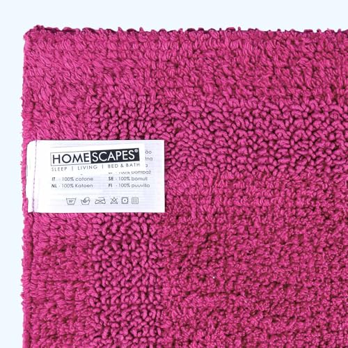 HOMESCAPES Bath Mat Set, Luxury 1600gsm Extra Soft 100% Cotton, Reversible Bathroom Mat Sets 2 Piece, Washable, Non-Slip, Super Absorbent, Quick-Dry, Raspberry Pink Bathroom Rug with Toilet Rug