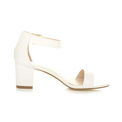 AJVANI Womens Mid Block Heel Ankle Strap Heeled Sandals in White | Size: 8