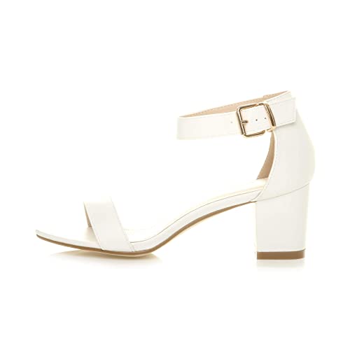 AJVANI Womens Mid Block Heel Ankle Strap Heeled Sandals in White Size: 8 - White - Size: 8