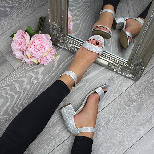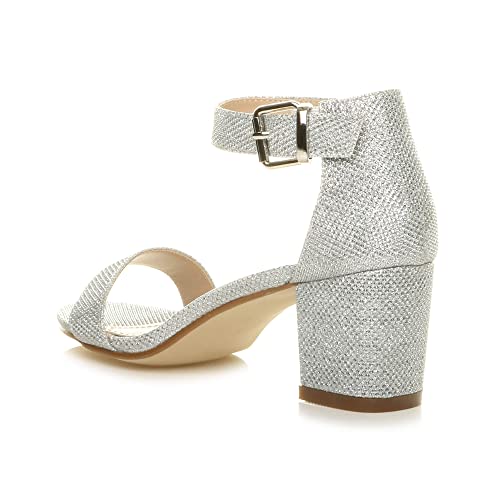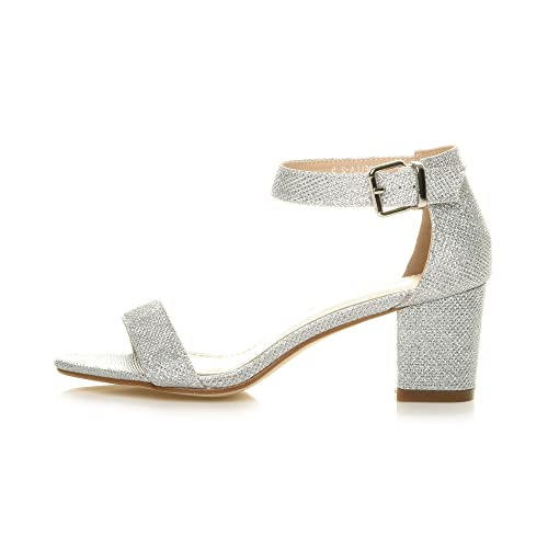 Ajvani Womens Ladies mid Heel peep Toe Buckle Ankle Strap Party Strappy Sandal Size 5 38, Silver Glitter, 5 UK