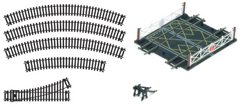 Titles Hornby R8224 OO Gauge Track Extension Pack D - Extra Track Pieces for Model Railway Sets, Model Train Track Pieces, Includes - Curves, LH Point, Buffer Stop & Double Level Crossing - Scale 1:76