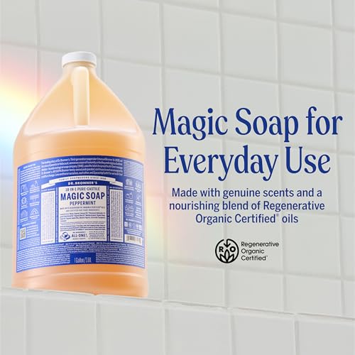 Dr Bronner's 18-in-1 Peppermint Pure-Castile Liquid Soap, Made with Organic Oils, Used for Face, Body, Hair, Laundry, Pets and Dishes, Certified Fair Trade & Vegan Friendly, 3,79Ltr Recycled Bottle