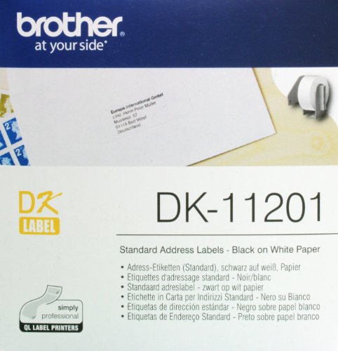 Brother DK-11201 Label Roll, Standard Address Labels, Black on White, 400 Labels, 29 mm (W) x 90.3 mm (L), Brother Genuine Supplies