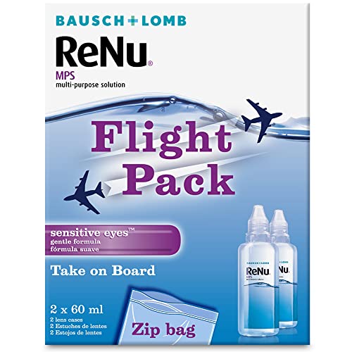 ReNu Multi-Purpose Travel Contact Lens Solution, 2X 60ml Flight Pack Size - for Soft Lenses, Gentle on Sensitive Eyes, Clean, Disinfect, Rinse, Lubricate and Store Your Lenses, Lens Case Included