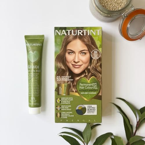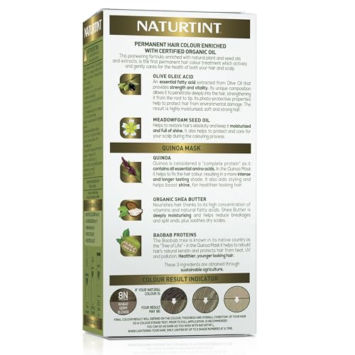 Naturtint Permanent Hair Colour Gel 8N Wheatgerm Blonde, Plant Enriched, Biobased, Ammonia Free, Long Lasting Grey Coverage and Radiant Colour, Nourishment and Protection