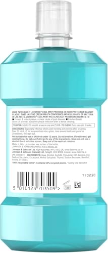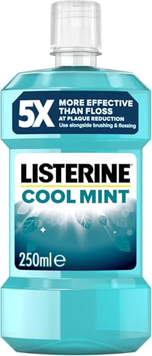 Listerine Cool Mint Antibacterial Mouthwash (250ml), Helps Kill Up to 99% of Germs Left After Brushing and Reduce Plaque, Mouthwash to Freshen Breath and Maintain Healthy Gums
