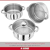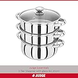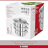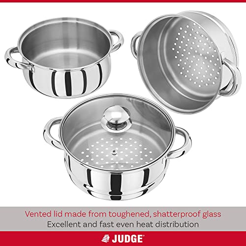 Judge Essential 3-Tier Stainless Steel Steamer - Thermic Based & Vented Glass Lid, Oven-safe Vegetable Steam Cooker with Cool Handles – Energy-Efficient, Induction Ready Healthy Steamer Cooking – 20cm