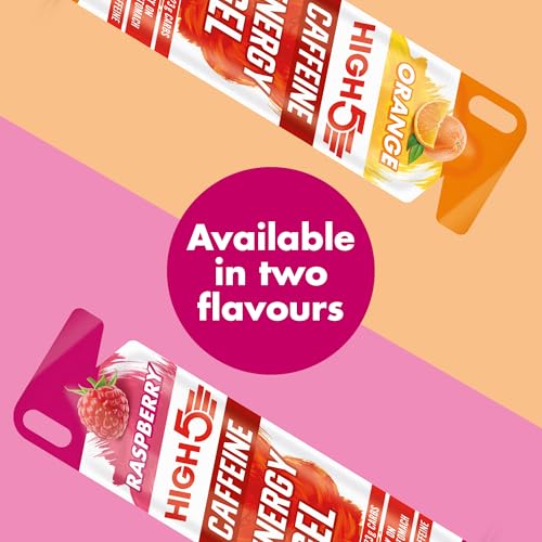 HIGH5 Caffeine Gels Running - Glucose Shots for Instant Energy and Running Fuel - Natural Fruit Juice Energy Shots - Sports Gel for Running, Cycling, Ultra Marathon, Ironman (Raspberry, 20 x 40g)