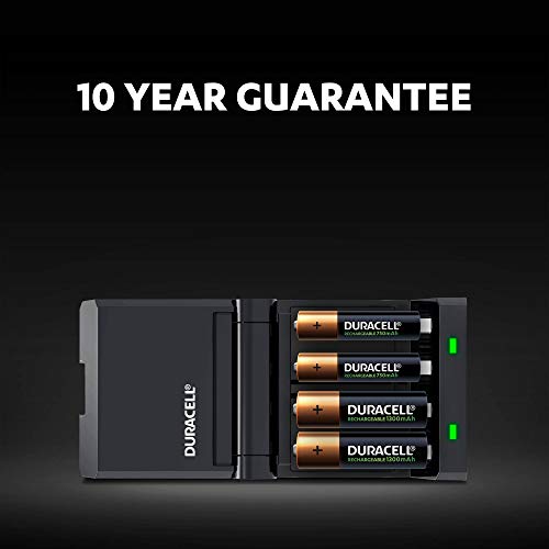 DURACELL Hi-Speed Battery Charger, 45 minutes, Compatible with AA and AAA NiMh Batteries, 2x AA 1300mAh and 2x AAA 750 mAh, Rechargeable Batteries Included