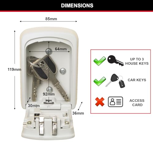 Master Lock Key Safe Wall Mounted, Medium 85 x 119 x 36 mm, Cream, Outdoor, Mounting Kit, for Home Office Industries Vehicles