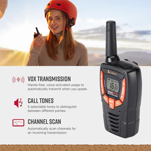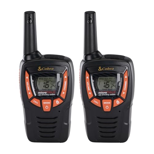 Cobra AM655 Compact Walkie Talkies for Adults (2-Pack) - 8 km Range, 16 Channels and 121 Privacy Codes, Weather Resistant, Rechargeable Two Way Radios, Black