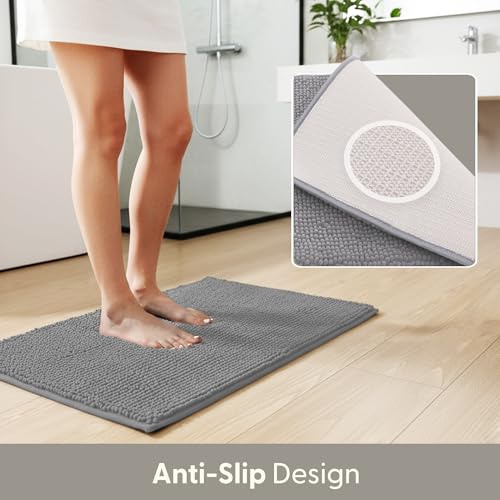 Keplin Non-Slip Microfibre Bath & Toilet Mat, Soft & Comfortable, 40x60cm in Light Grey Size: 40 cm x 60 cm Light Grey 40 cm x 60 cm