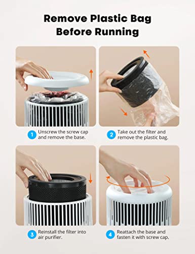 PureMate Air Purifier for Home, Quiet Air Cleaner with True HEPA Filter with 4 Speeds and Sleep Mode, Night Light, Odors Dust Mold for Allergens Smokers Pollen Pet Hair
