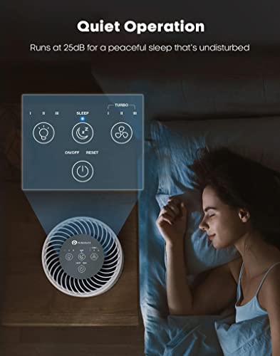 PureMate Air Purifier for Home, Quiet Air Cleaner w/ True HEPA Filter w/ 4 Speeds & Sleep Mode, Night Light, Odors Dust Mold for Allergens Smokers White Medium