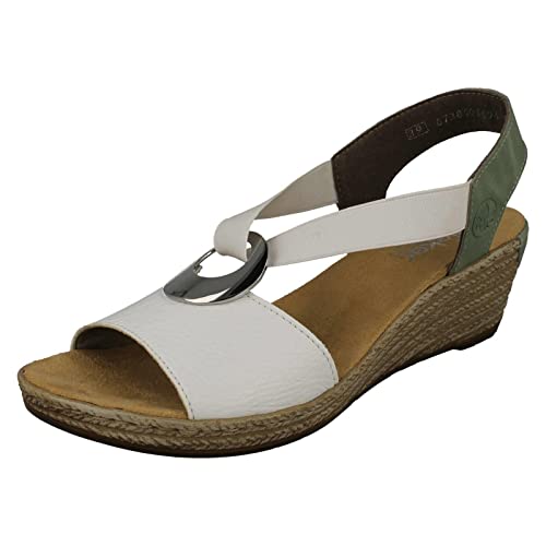 Rieker Ladies Wedge Heeled Sandals 624H6-14 - Blue Synthetic - UK Size 4 - EU Size 37 - US Size 6