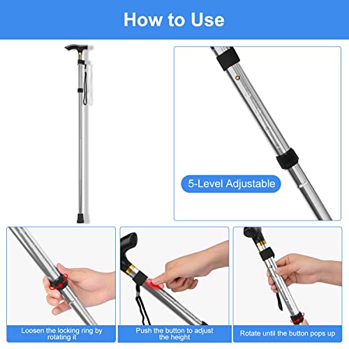 supregear Walking Stick - Adjustable Folding Walking Sticks for Women and Men - Lightweight Portable Collapsible Balancing Aid - Foldable Travel Cane for Ladies Elderly Adults, Silver