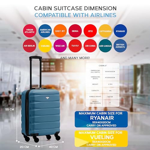 Flight Knight 55x40x20 Ryanair Priority Cabin Suitcase, Also for EasyJet, Jet2, Lightweight,ABS Hard Shell, Durable 4-Wheel Cabin Case, Carry-On Size 10kg Hand Luggage, Travel Bag- 55 x 40 x 20
