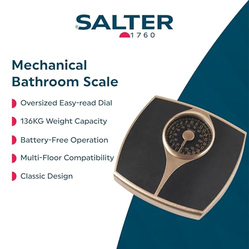 Salter 148 GFEU16 Speedo Dial Mechanical Bathroom Scale – Body Weight Scale with Oversized Dial, Fitness Scale with 136KG Capacity, No Batteries Required, Large Platform, Measures in KG/ST/LBS, Gold