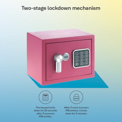 YALE Home Safe Mini Pink, Keypad/Key Access, Anti-Shock