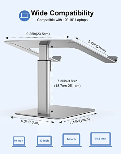 Babacom Laptop Stand for Desk, 8 Adjustable Height Aluminum Laptop Riser, Ergonomic Computer Stand Sit to Stands Desktop Book Stands Compatible with MacBook, Air, Pro and More 10"-16" Notebooks-Silver