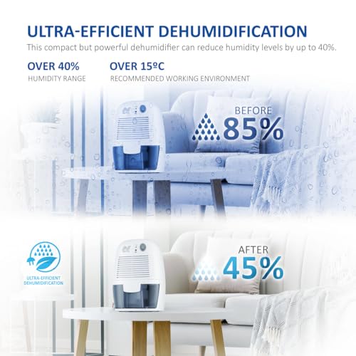 NETTA Dehumidifier 500ml Mini Air Dehumidifier for Damp, Mould, Moisture, Portable and Ultra Quiet for Home, Bathroom, Bedroom, Kitchen, Wardrobe, Basement - Grey [Energy Class A+++]