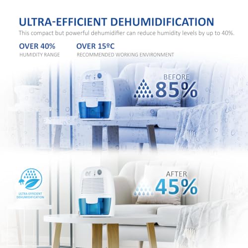 NETTA Dehumidifier 500ml Mini Air Dehumidifier for Damp, Mould, Moisture, Portable and Ultra Quiet for Home, Bathroom, Bedroom, Kitchen, Wardrobe, Basement - Blue [Energy Class A+++]