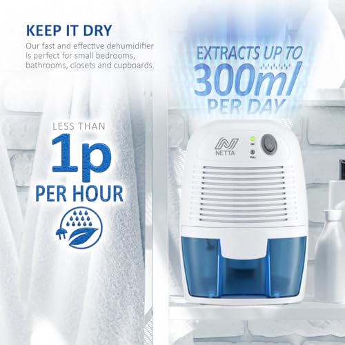 NETTA Dehumidifier 500ml Mini Air for Damp, Mould, 500ml, Blue