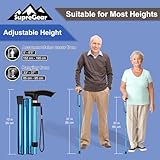 supregear Walking Stick - Adjustable Folding Walking Sticks for Women and Men - Lightweight Portable Collapsible Balancing Aid - Foldable Travel Cane for Ladies Elderly Adults, Blue