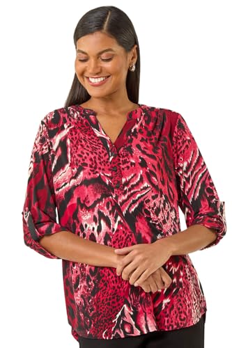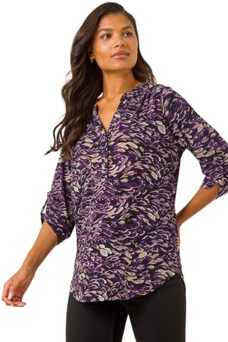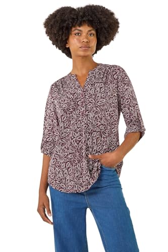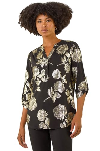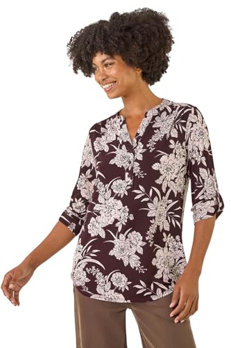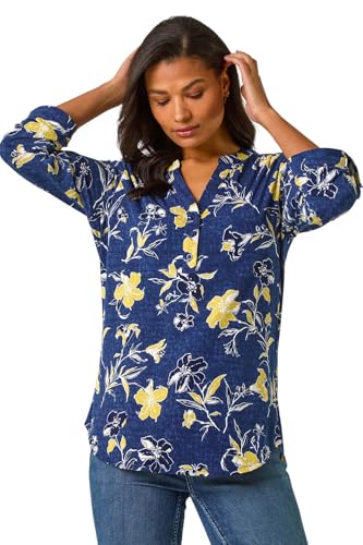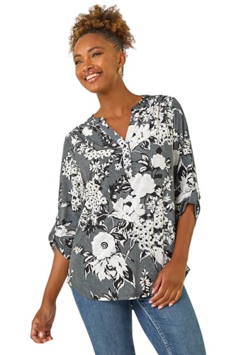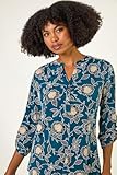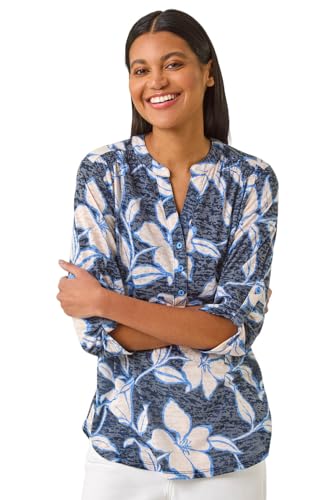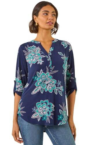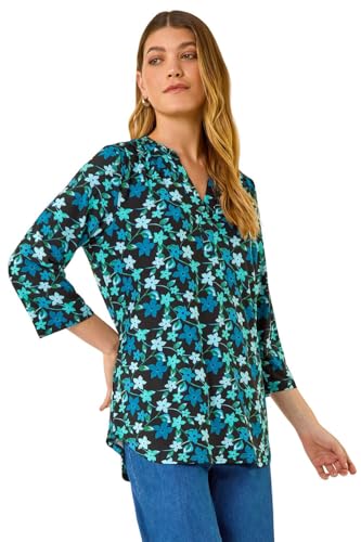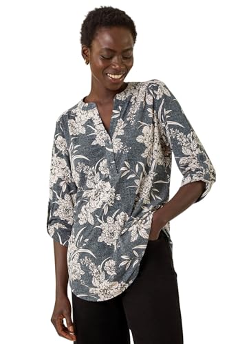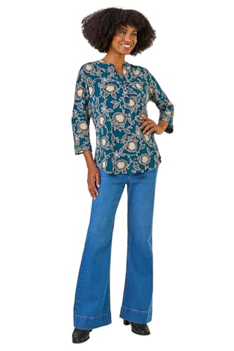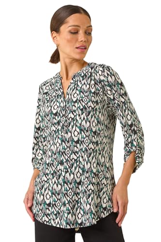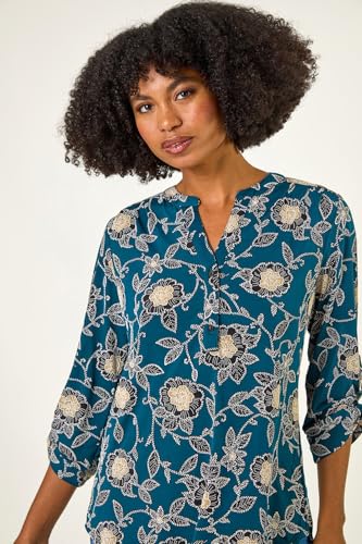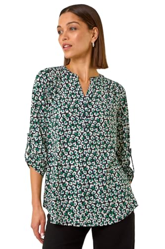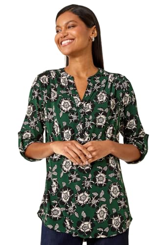Roman Womens Textured Floral Print Stretch Shirt - Green - Size 10 Uk